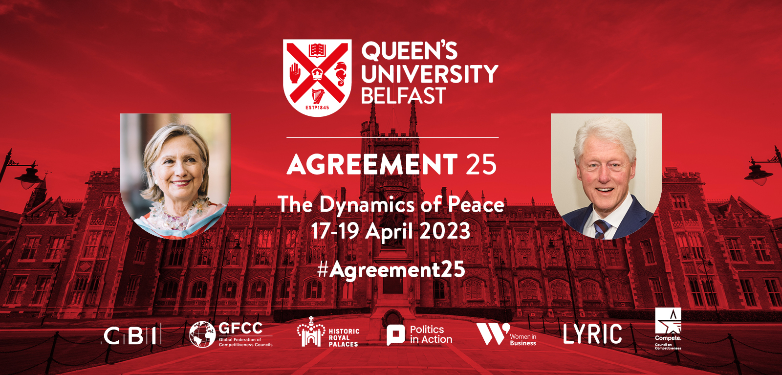 Former President of the United States, President Bill Clinton, and the Chancellor of Queen’s University Belfast, Secretary Hillary R. Clinton, are among the first global leaders to be announced as part of Agreement 25 at Queen's.