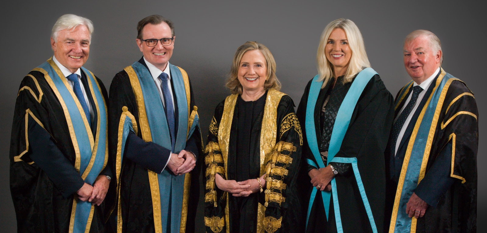 (Image caption 1-r): Dr Len O'Hagan CBE, Professor Ian Greer, Secretary Hillary Clinton, Orla Corr and Dr Stephen Kingon CBE