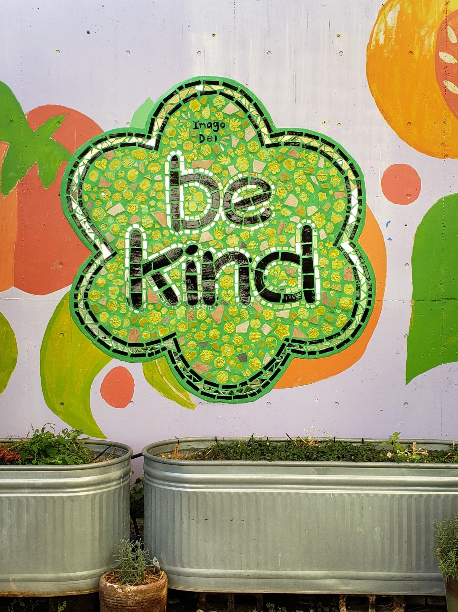 “Be kind” mural at Imago Dei Middle School, Tucson, AZ, USA. (Ben’s Bells, 2025)