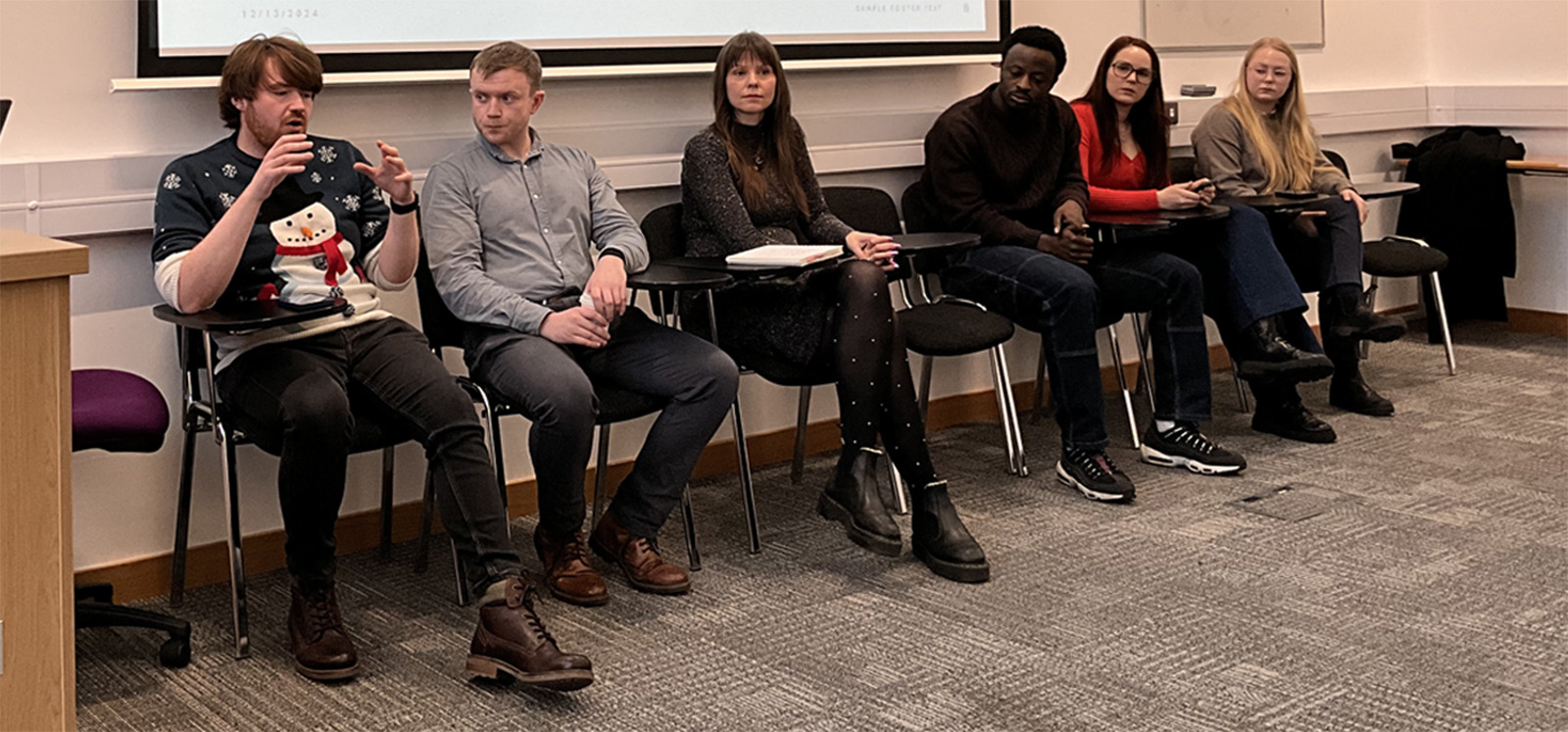 Pictured L-R: James Sweeney (third year, Law), Anna Montgomery (third year, Law), Samantha Darrah (second year, Psychology), Anna Hollis (second year, Psychology), Joseph Wakley (first year, HAPP), Fiona Stuart (first year, Law).