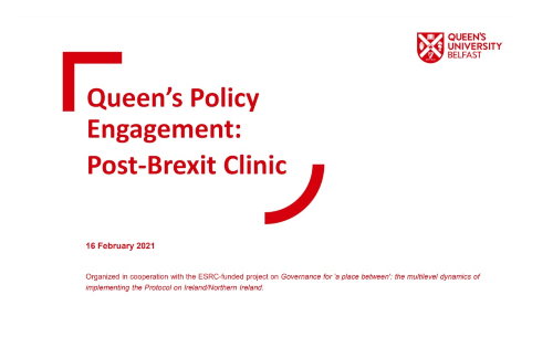 The Post-Brexit Clinics have been open to the public and organized in collaboration with Queen’s Policy Engagement team and have provided regular academically-informed assessments of key developments in the Brexit process and the implementation of the Protocol on Ireland/Northern Ireland.
