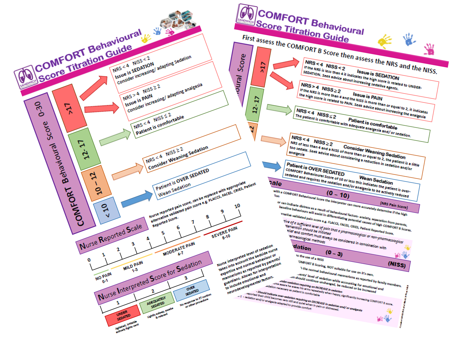 Each of the documents below are double sided with a guide to interpret COMFORT B scores the front with a more detailed explanation to the rear.